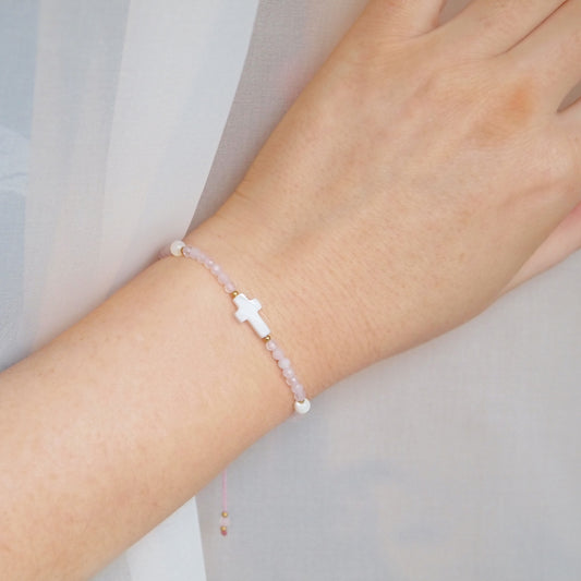 Rose quartz cross bracelet