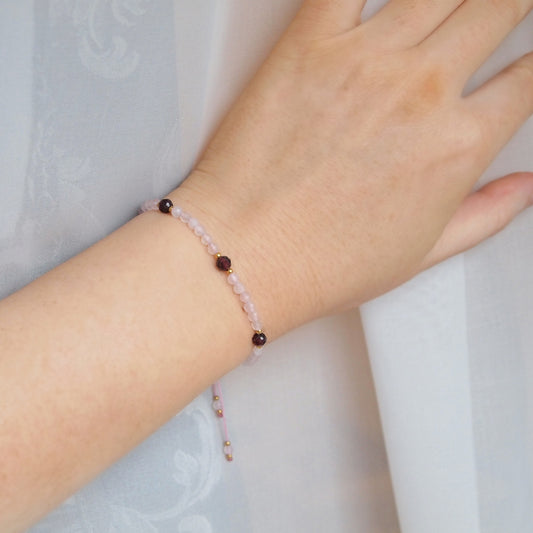 Rose quartz and Garnet beaded bracelet