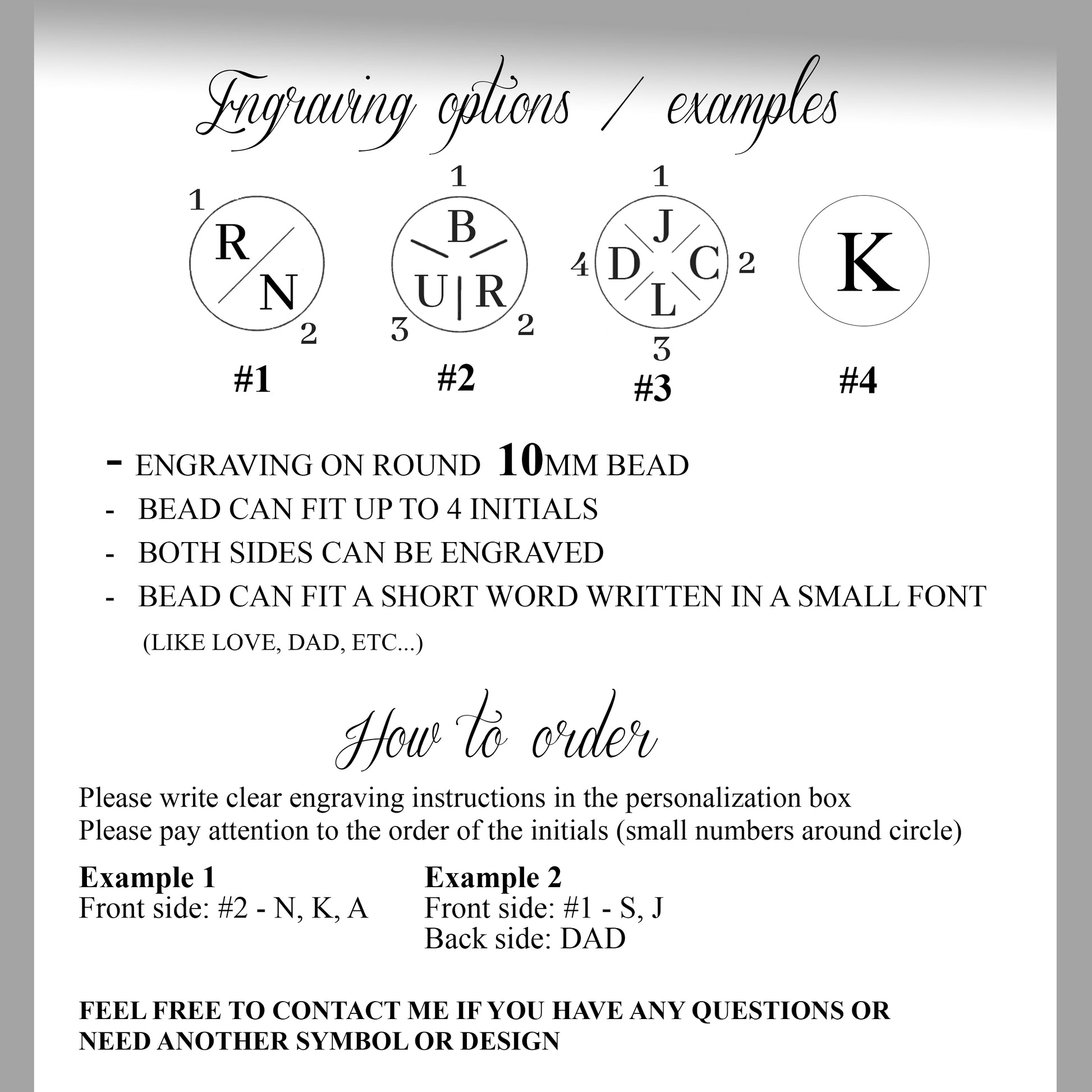 Please see pictures for engraving information instructions