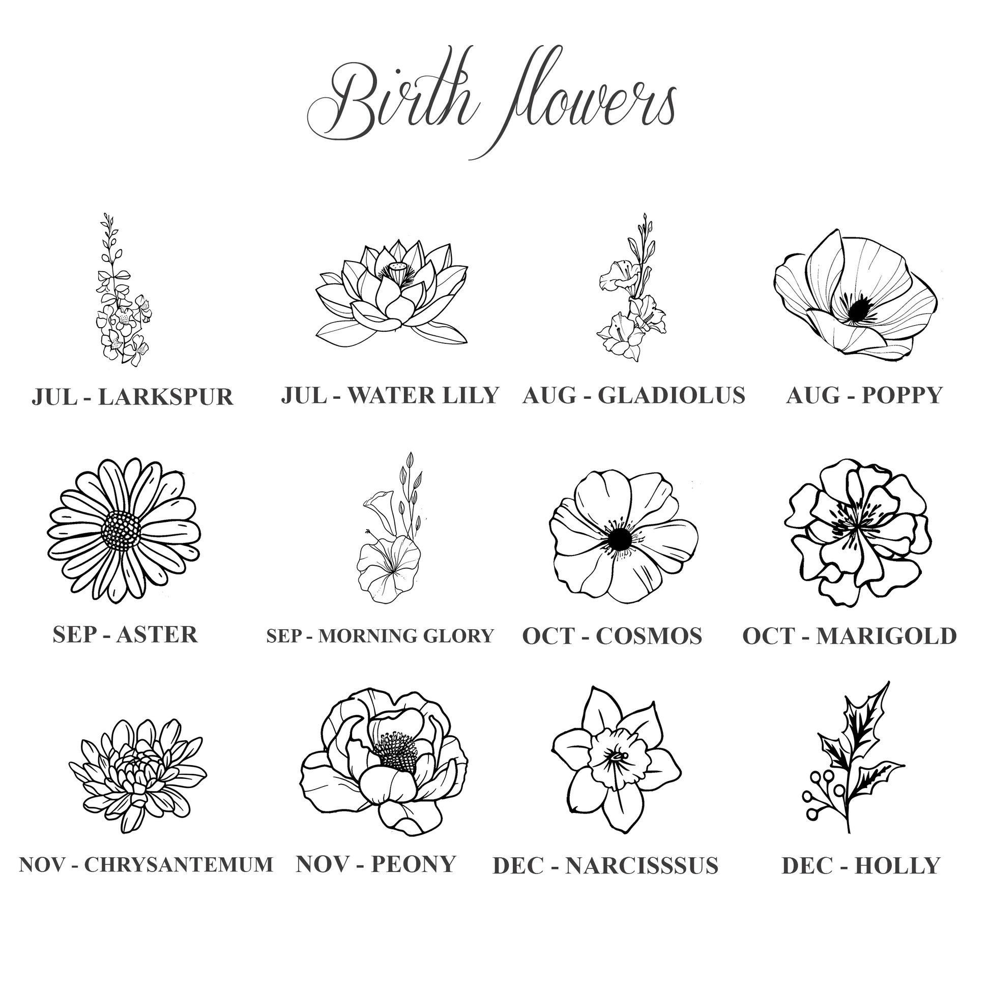 - each month has 2 birth flowers, choose which one you like the most