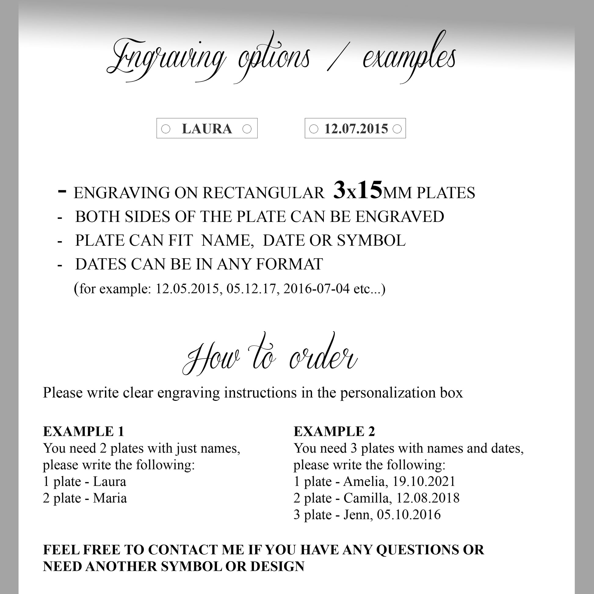 - one or both sides of the plate can be engraved